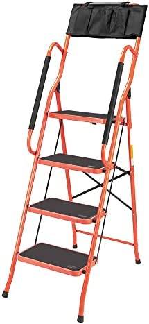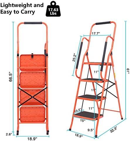 LUISLADDERS 4 Step Ladder Safety Tool Ladder Folding Anti-Slip Step Stool Ladder Padded Side Handrails with Large Area Pedals for Kitchen Home and Office 330lbs (4 Step)
