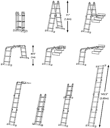 LUISLADDERS Folding Ladder Multi-Purpose Aluminium Extension 7 in 1 Step Heavy Duty Combination EN 131 Standard (12.5 Feet)