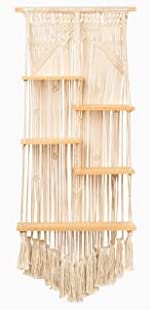 EASY INSTALLATION & SUITABLE: Create an eye-catching accent on your wall with this boho floating shelf.Modern symmetrical design and eco-friendly hanging shelf is handcrafted by experienced artisans. This macrame wall plant shelf will certainly be a great platform to show them off.Make sure to secure the shelf on a strong supported wall/mount. The Color of the rope is creamy white.