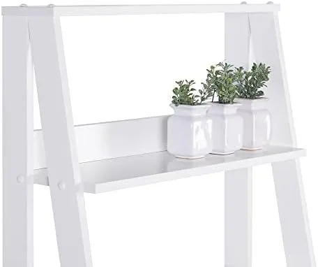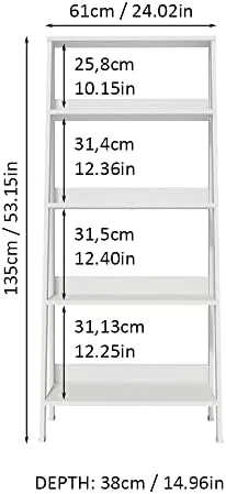 Madesa 5-Tier Ladder Shelf with Storage Space, Free Standing Bookshelf, Wood, 15" D x 24" W x 53" H – White