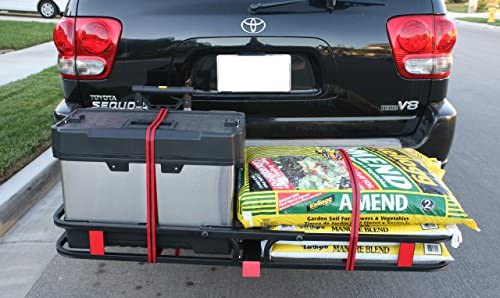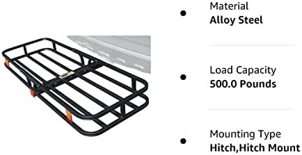 MaxxHaul 70107 53" x 19-1/2" Hitch Cargo Carrier – Trailer Hitch Mount Steel Cargo Carrier With High Side Rails For RV's, Trucks, SUV's, Vans, Cars With 2" Hitch Receiver – 500-lb Load Capacity , Black