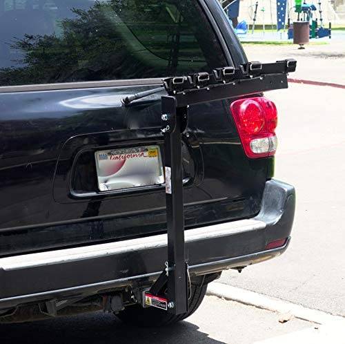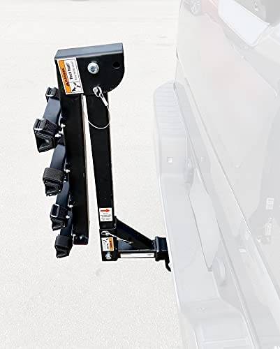 Swing down feature allows easy access to rear of vehicle, MaxxHaul Towing Products 70210: Deluxe 4-Bike Hitch Mount Rack is Ideal for vans, RVs, SUVs, pickup trucks and sedans with receiver hitch. Can be easy installed in minutes. Support arms with adjustable hold down straps firmly secures and transports your bikes