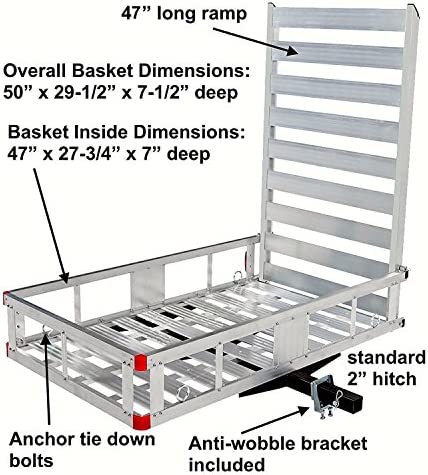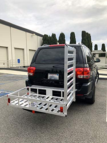 MaxxHaul 80779 50" x 29.5" Trailer Hitch Mount Aluminum Cargo Carrier With High Side Rails With 47" Ramp For RV's, Trucks, SUV's, Vans, Cars – 500 lb. Capacity