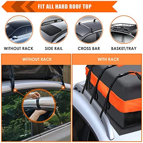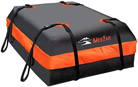 MeeFar Car Roof Bag XBEEK Rooftop top Cargo Carrier Bag Waterproof 15 Cubic feet for All Cars with/Without Rack, Includes Anti-Slip Mat, 8 Reinforced Straps, 6 Door Hooks, Luggage Lock