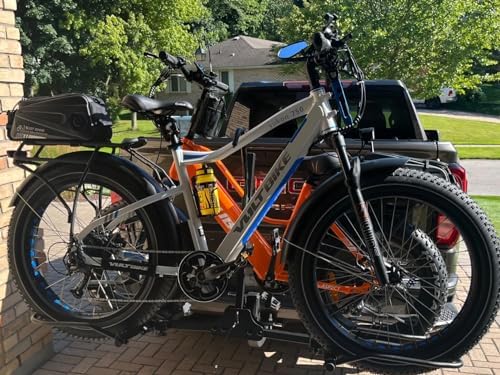 EBIKE COMPATIBILITY: Fits 17-29 inch wheels, up to 63 inch wheelbase, up to 5.5 inch tires. It is also equipped with safety strap, security hitch locking pin, tightener and other necessary hardwares.