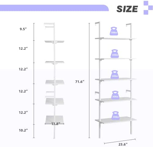 【STRONG & DURABLE】This sturdy ladder shelf is made of high-quality square steel tube and durable particleboard and it was designed with a grab wall design. Solid screws hold the shelves to the walls and prevent them from collapsing.