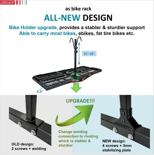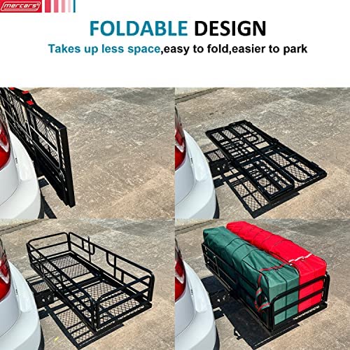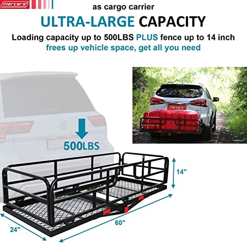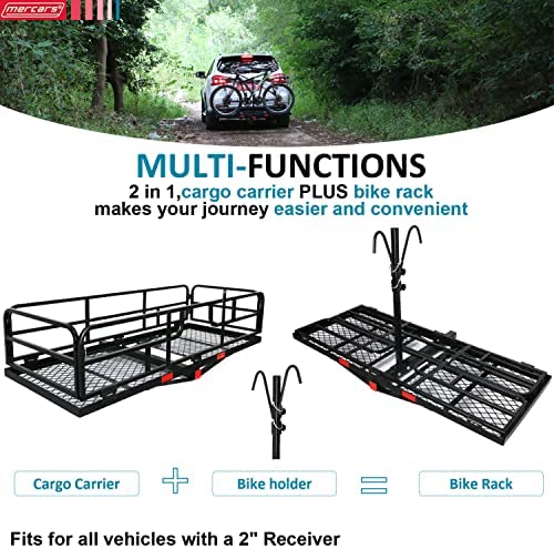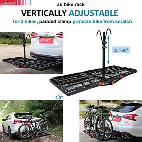MERCARS Hitch Cargo Carrier with Bike Rack Hitch 60" x 24" x 14" Fits 2 Bikes, Heavy Duty Trailer Hitch Cargo Carrier 500Lbs, Folding Cargo Carrier Hitch Mount Fits 2" Receiver