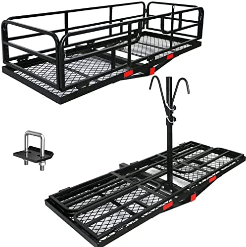 Versatile: Bicycle racks for trailer hitch,Ideal for transport bikes, hitch storage, Ideal for transport mobility scooters, luggage, and anything else that can be loaded up and strapped down. Simply fold up the empty carrier to save space and put it away when not in use. The reflectors add visibility to the cargo carriers and your vehicle.
