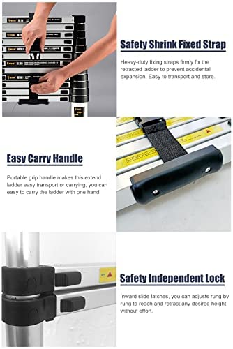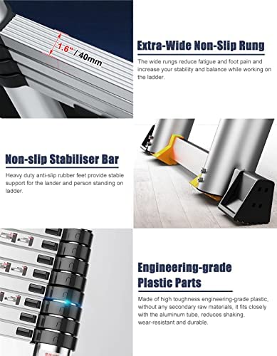 ✅ 【 INTELLIGENT LOCKING MECHANISM 】 The independent locks allow the user to adjust the height of the ladder to specific requirements. You can adjust rung by rung in 1.3ft increments to reach and retract any desired height without effort.