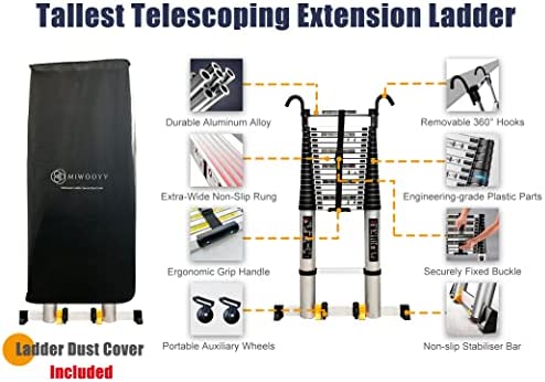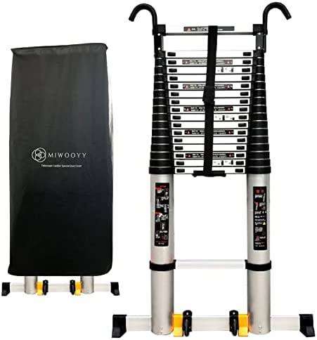 MIWOOYY 26 feet / 23 feet Telescoping Ladder with Hooks & Stabilizer Bar, Aluminum Folding Extension Ladders for RV/Rooftop Tent/Attic/Outdoor Work, Loads 150kg (26ft/8m)