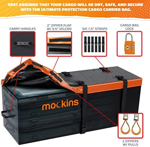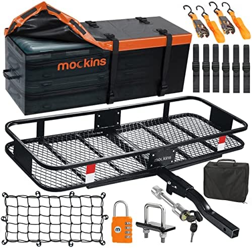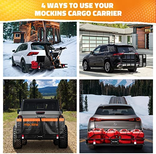 Mockins 60x20x6 Folding Cargo Carrier Hitch Mount | 500 lb Capacity Hitch Rack with 16 Cu Ft Waterproof Cargo Carrier Bag | Steel Trailer Hitch Cargo Carrier | Hitch Mount Cargo Carrier Cargo Trailer