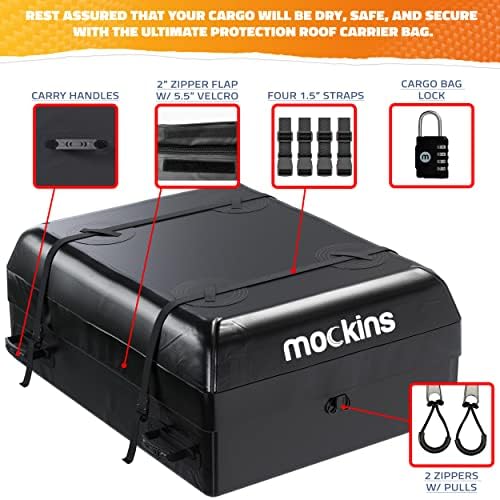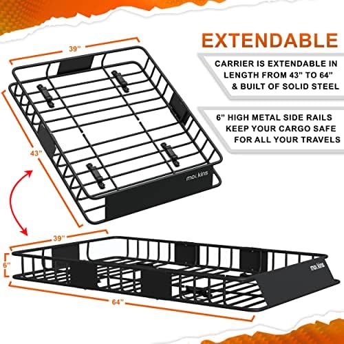 Mockins Roof Cargo Basket 64x39x6 Extendable Roof Rack Cargo Carrier 250lb Roof Basket Cargo Carrier | Roof Rack Cargo Basket &16 CF Waterproof Bag | Cargo Rack Rooftop Cargo Carrier Roof Rack Basket