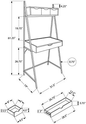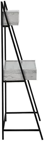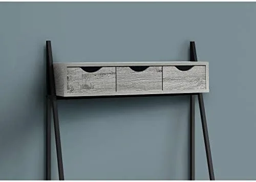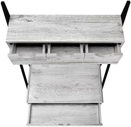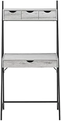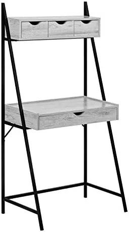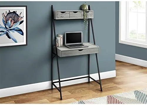 When you desperately need to carve out your own workstation but space is a challenge, then look no further than this space-saving computer desk that includes plenty of storage! Finished in a warm, grey wood-look laminate with a sturdy black metal frame, this compact workstation has enough surface area to place a laptop and a small lamp, with a long drawer on metal glides to tuck away easy to reach office essentials. Look up and you have another 3 storage drawers on top with a shelf to place a few books, decorative accessories, and other inspirational objects. This desk can sit in a hallway, your livingroom, bedroom, or any nook where you can have your own creative workspace without taking up too much room. Assembly is required.