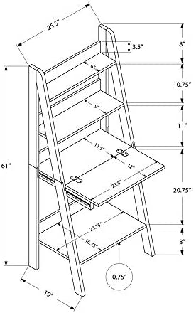 Dimensions: ladder wall desk is 61″(h) x 19″(D) x 25. 5″(L).