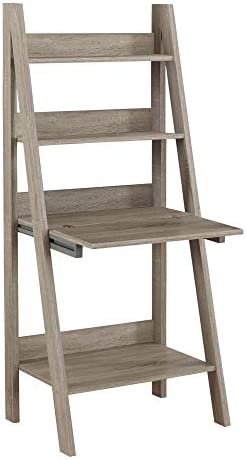 This multifunctional ladder desk doubles as a standing offers a small computer desk for small spaces. This desk bookshelf is ideal for apartments, condos, or small homes. With clean lines in a bold dark Taupe finish, This computer desk will blend easily with your home decor. The top ladder style shelves can be used to display pictures and decorative pieces, while the closed storage area can be dropped down into a desk. Add this computer desk to your home for a functional workstation, where ample storage options, excellent functional features and sophisticated style come together.