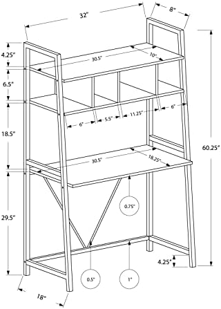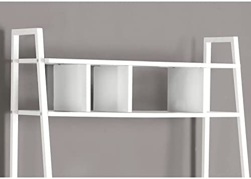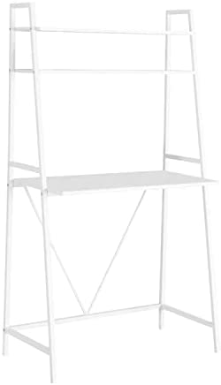 This simple, minimalist computer desk offers a compact work space that is ideal for apartments, condos and other small spaces. With clean lines in a bold White finish, this desk will blend easily with your home decor. The top ladder style shelves can be used to display pictures and decorative pieces while the ample surface area provides enough room for a laptop and other office essentials. Add this convenient piece to your home for a functional workstation, where ample storage options, excellent functional features and sophisticated style come together.