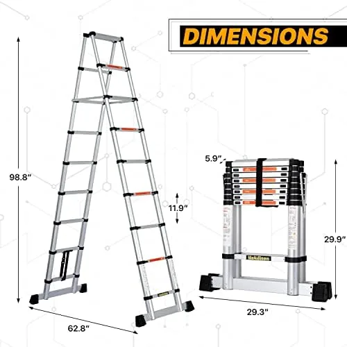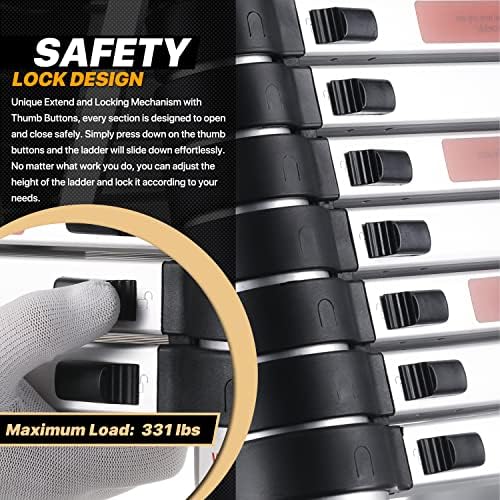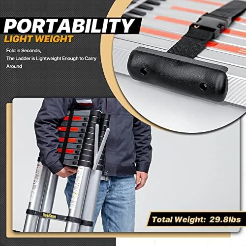 If you need extra height for outdoors working and get tired of bringing your bulky, unwieldy ladder around, our extension ladder could be your smart choice. This telescoping ladder is an extension ladder that can easily collapse when not in use for easier storage, also you can adjust the height of the ladder quickly and conveniently.