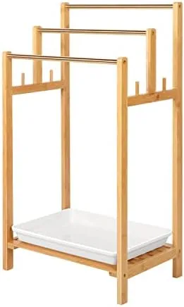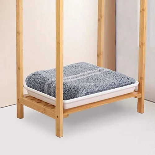 BOTTOM SHELF FOR EXTRA STORAGE – This bamboo towels holder comes with a bottom storage shelf with a water tray so that you can store extra towels, washcloths, or even toiletries there, and do not afraid make the room wet. It provides you with convenience and easy access to various bath products.
