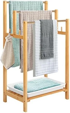 3 TIERS BAR DESIGN – Offers 3 levels of drying tiers for your items so you can safely drape longer towels over the top bar without worrying about them dragging on the floor, along with an extra storage shelf on the bottom level and a tray for the water.
