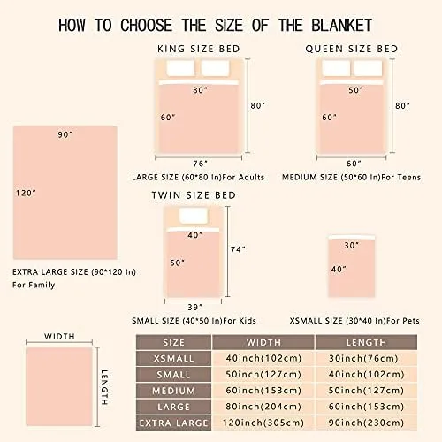 SIZE: 40* 50 inches,50* 60 inches,60* 80 inches,90* 120 inches.It is perfect for camping, traveling, napping, playing, sleeping and reading companion.The size in the picture is 60*80 inch.