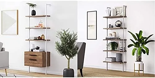 Our elegant 5-tier bookcase has a minimalist style that can fit your home office or living room. The open-shelving structure will add visual space for your small apartment. It features easy-to-assemble design you can mount to any wall.