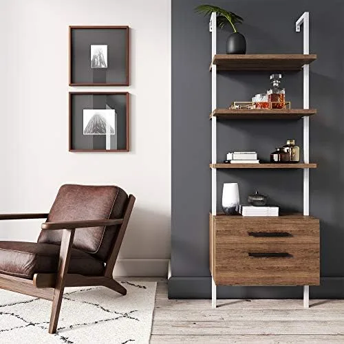Our elegant 3-tier Theo bookcase has a minimalist style that can fit your home office or living room. The open-shelving structure will add visual space for home, apartment or office plus this bookshelf features two easy glide drawers for extra storage. It features an easy-to-assemble design you can mount to any wall for space-saving storage and display options for books or collectibles.