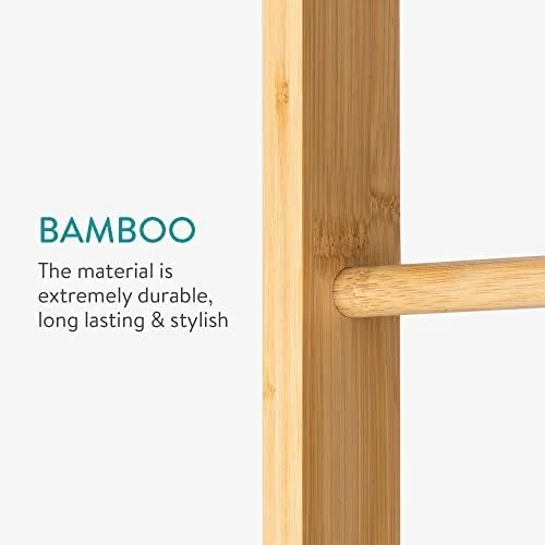 BAMBOO RACK: Bamboo is both durable and lightweight, making this towel holder both robust and easy to move around. The bamboo finish also makes this an attractive addition to your home.