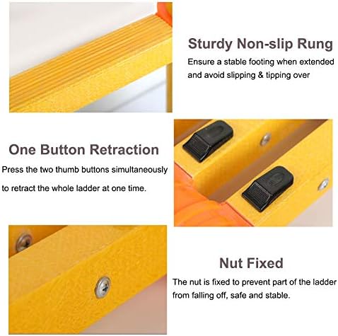 One Button Retraction: Convenience is key! That’s why we’ve designed this ladder with easy one button retraction. Simply press down on the thumb buttons and the ladder will slide down effortlessly.