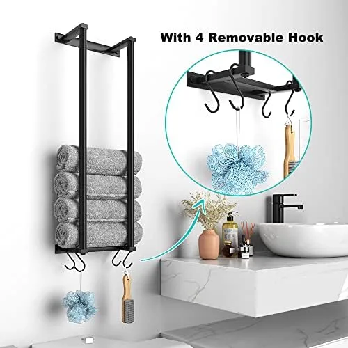 🧡STORAGE 6 PCS BATH TOWELS – Nidouillet towel holder gives you a perfect storage solution for your bath towel. Wall mounted towel rack can hold about 6-7 regular towels. It helps you free up bathroom space and has a clean sleek look to your bath towels.