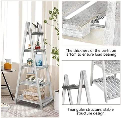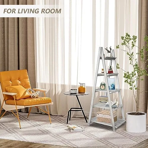 👍【Classic and Natural Design】This Ladder Shelf uses natural wood as raw material while retaining the grain of the wood. A clean and simple style is perfectly integrated with any home decoration. A very popular shelf that combines decorative and functional purposes together.