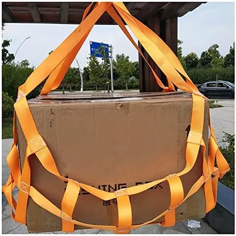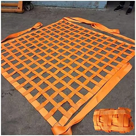 CONVENIENT & PRACTICAL: Strong flat webbing net lifting sling is flexible, with 1~2 ton Vertical Capacity (depending on size). The webbing has a 10cm mesh (large size will increase the opening), which can completely wrap the goods.