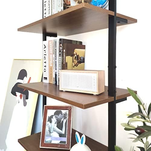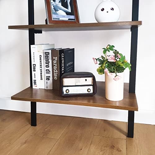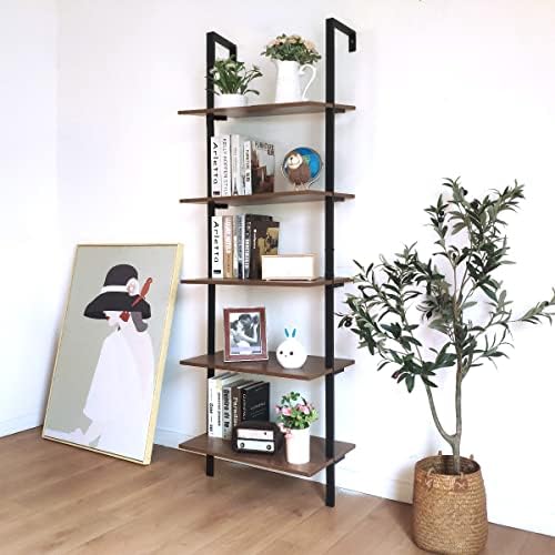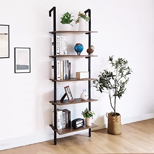 OGCAU Ladder Shelf, 5 Tier Ladder Bookshelf Organizer, Open Wall Mount Ladder Bookshelf, Display Storage Rack Organizer, Industrial Metal Frame – Dark Brown
