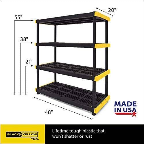 Original Black & Yellow 4-Tier Storage Shelving Unit, Indoor/Outdoor, Heavy Duty Storage Shelving Unit (55”H x 48”W x 20”D)