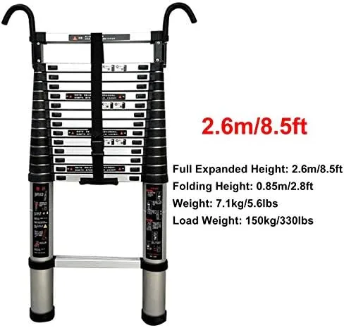Premium Aluminum Alloy: The extension ladder is crafted from aluminum alloy, rustproof and durable. It’s lightweight and easy to carry without sacrificing strength