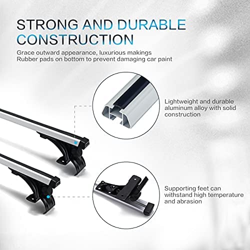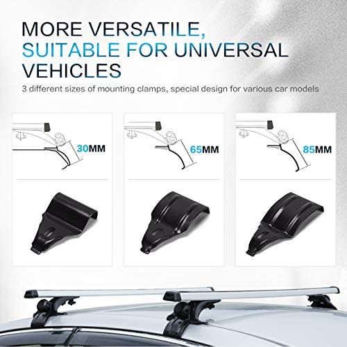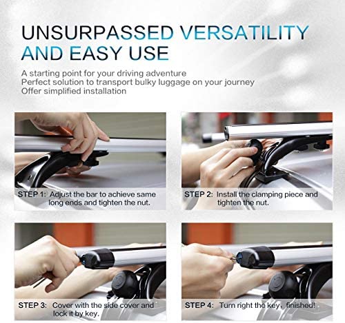 【MULTI-FUNCTIONAL DESIGN】- The universal cross bars provide a perfect foundation for the installation of bike carriers, cargo boxes, and other rooftop accessories used for carrying kayaks, canoes, luggage, snowboards, skis bikes, fishing poles and so on. Never need to worry about there are no palce to put your heavy things, make you feel carefree during the whole trip.