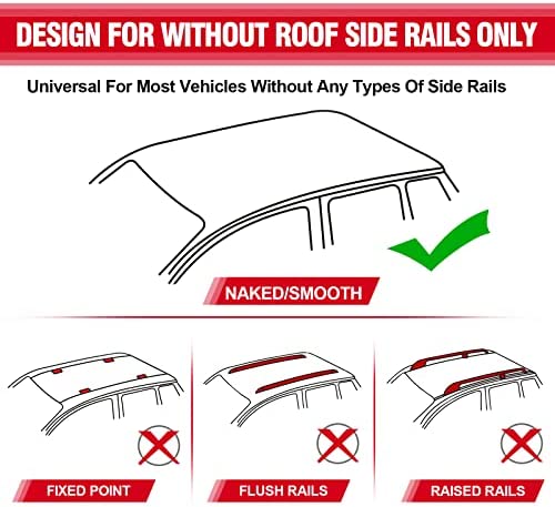【EASY INSTALLATION & PACKAGE】Easy to assemble & remove in few minutes. No drilling/cutting required, no side rails needed. Full Set of Roof Rack System has: a pair of cross bars, four mounting towers, three pair of mounting brackets and instructions.