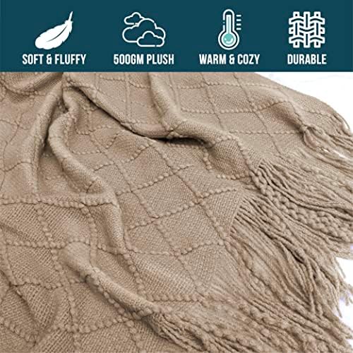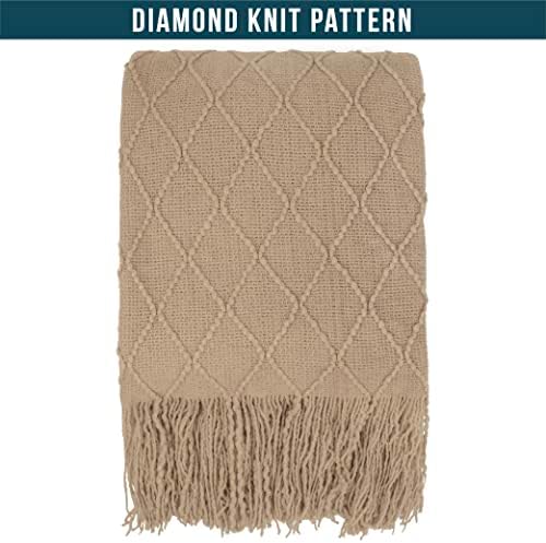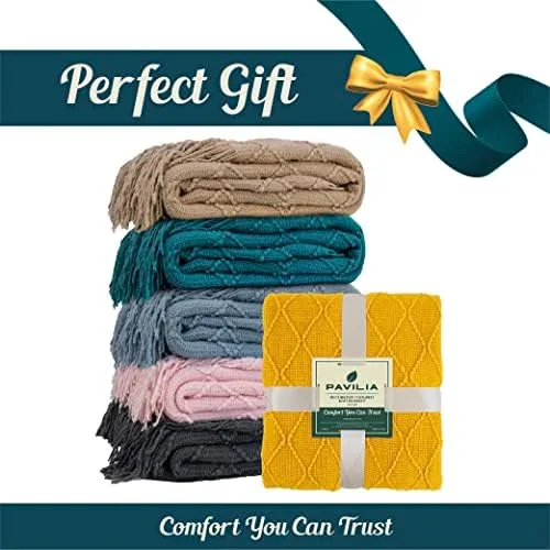 TAN TAUPE KNITTED THROW BLANKET: Made of 100% premium acrylic, PAVILIA textured throw blanket is super soft, cozy and lightweight. The fringe blanket is silky smooth to touch, warm, and versatile for all season use. Perfect for all year long, the knit blanket keeps you comfortable in spring and summer and warm enough as layers during winter and fall. With its ultimate comfort, this woven blanket makes a decorative home essential gift for women, men, kids, boys, and girls.