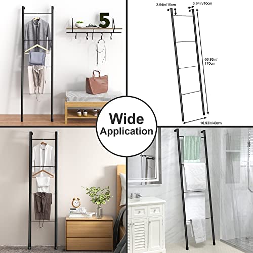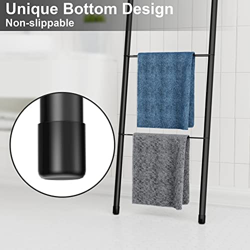 Pickpiff Black Metal Blanket Ladder – Free Standing Wall Leaning Ladder Towel Rack for Decorative Bathroom, Living Room, Kitchen, Holder for Towels, Blankets, Throw Blankets, Quits(4-Tiers, Black)
