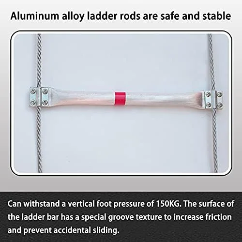 ❤ FIRE-RESISTANT AND FLAME-RETARDANT ROPE LADDER: The ladder adopts thick aluminum alloy ladder and thick steel wire ladder rope, which is fire-resistant and flame-retardant. Compared with ordinary wooden sticks, it is wear-resistant, non-slip, not easy to deform and crack, and has strong bearing capacity and can withstand 330 pounds of vertical foot pressure, high safety factor.