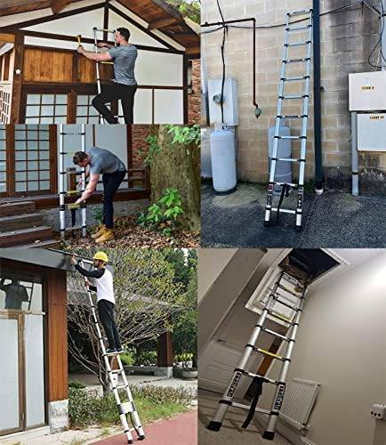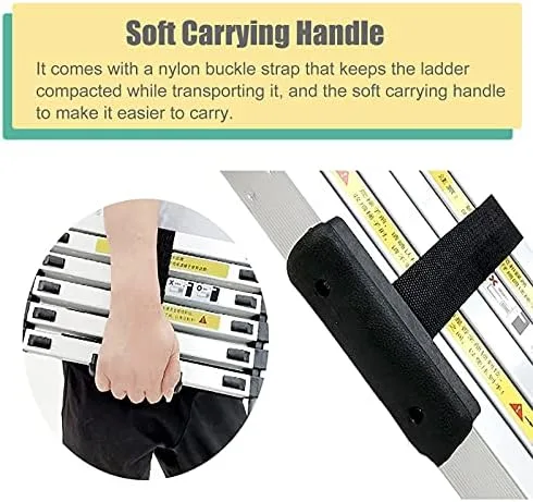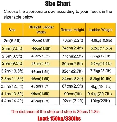 【Heavy Duty Aluminum】:The telescopic ladders made of durable aluminium,and parts is engineering plastics to improves load capacity,stability,aging resistance and extends service life.Load 150kg/330lbs.