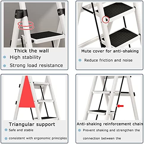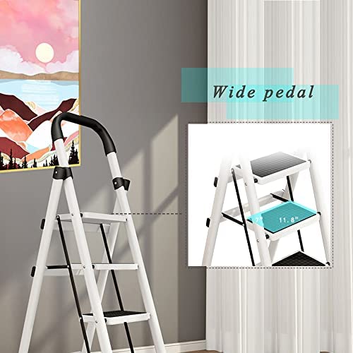 Portable Step Ladder White and Black,Folding Step Stool with Wide Anti-Slip Pedal, Lightweight 330 lbs Load Capacity Step Ladder,Portable Step Stool for Household (4-Step Type01, White)