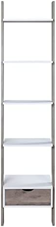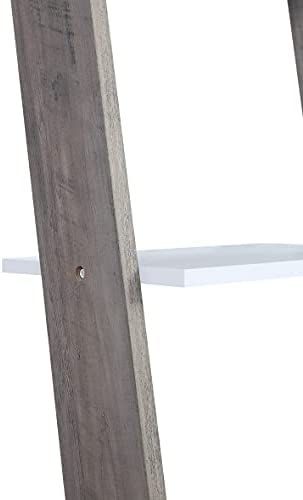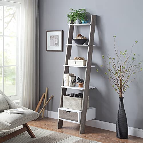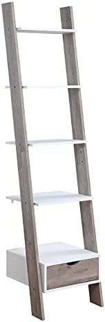 Add this Two-Tone White and Weathered Grey Finish 5 Tier Bookcase Shelf Ladder Leaning with Drawer – 74″ Height to our home or office decor. Features 5-tier of ladder shelving with one drawer for extra storage for any home decor. Dimensions: 74 inches high x 18 inches long x 18 inches deep. Assembly required.