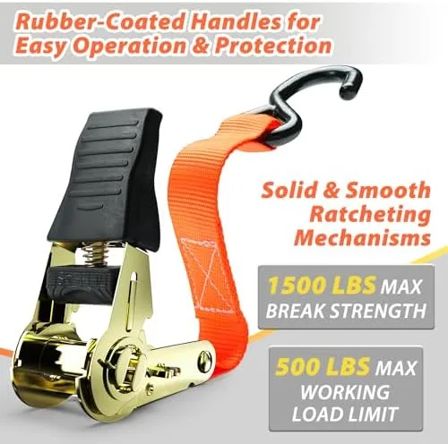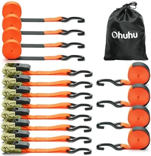 Ratchet Tie Down Strap 8-Pack 15 Ft – 500 lbs Load Cap with 1500 lbs Breaking Limit, Ohuhu Ratchet Tie Downs Logistic Cargo Straps for Moving Appliances, Motorcycle, Orange