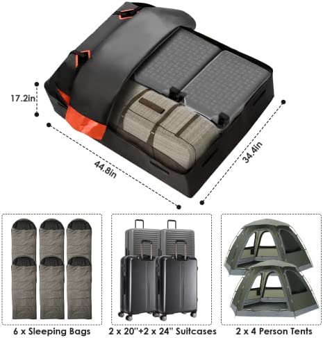 15 Cubic Feet of Space – RichYa Roof Bag (44.8*34.4*17.2 inch) is an extra car space that can hold two 24″ suitcases, two 20″ suitcases and other items, giving you spacious and comfort travel experience.