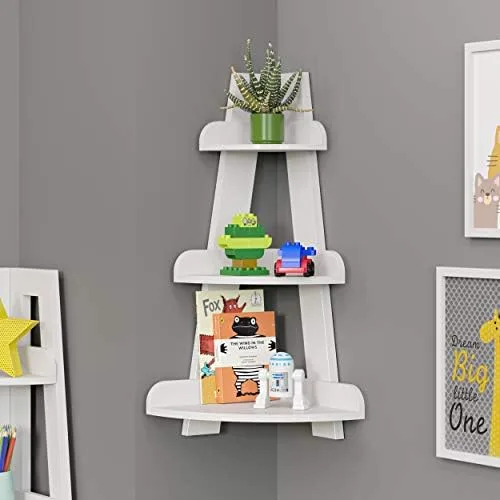 RiverRidge Kids Wall Corner Ladder Shelf, White