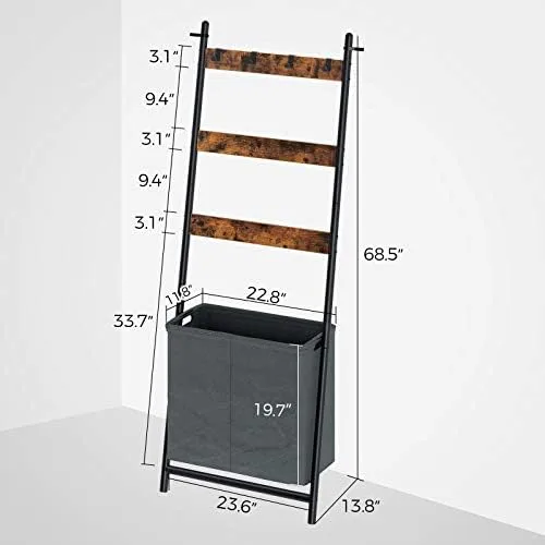【Decorative Space Saver】 Dimensions: 23.6’’W x 68.5’’H. A 3-tier blanket towel with a removable storage basket. Prop the towel ladder against a wall to store throws and linens as a catch-all rack.Taking advantage of the vertical space and organizing your clothes, towels, blankets, bags and etc.