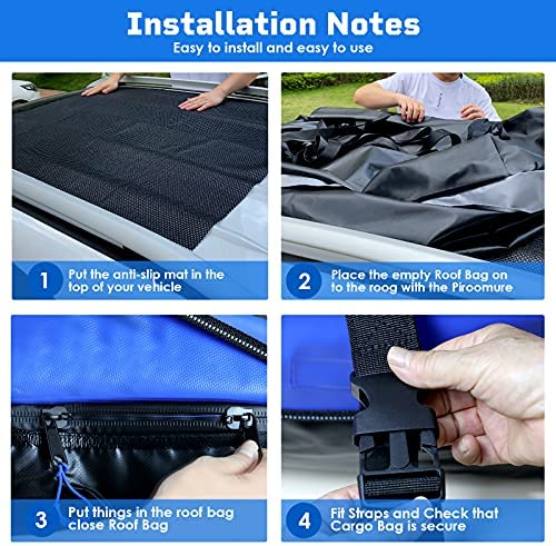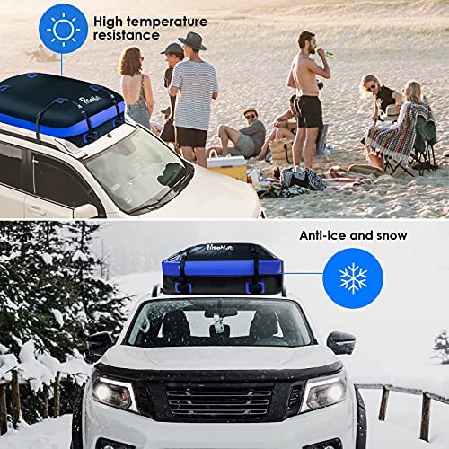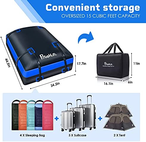 【Premium Waterproof Fabric】Made of 500D*500D waterproof PVC fabric, our rooftop cargo carrier provides excellent waterproof performance,which can be can be used to keep luggage or personal items dry, and effectively prevent them from getting wet in heavy rain.