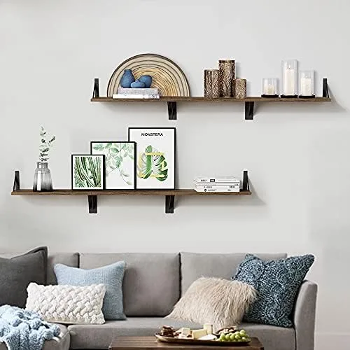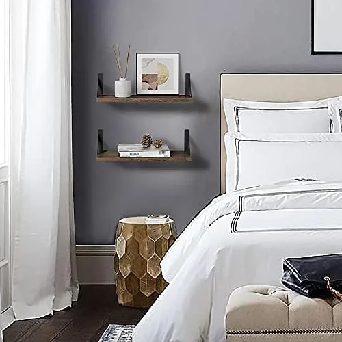 【Sturdier and Easy to Install】This wall mounted shelf set constructs of natural solid paulownia wood and industrial iron. These dark brown shelves bearing capacity is up to 40 lb. They can be used as bookshelf, TV rack in home office, nursery, classroom. Easy to assemble with all necessary hardware included according to the instruction steps.