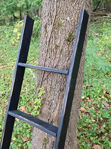 Beautiful hand made 60″ wooden ladder. This unique piece is perfect for a variety of uses and adds a fabulous touch to any room. It can be leaned against the wall as a shelf or rack, hung vertically or horizontally as a wall shelf or even suspended from the ceiling, the possibilities are endless. Measures Approx. 60″ tall 22″ wide and 2.5″ deep. Finished in picture black, hand distressed and treated with a coat of dark wax for added durability and beauty. Please select your desired finish color from our options. Please keep in mind that these are built from 100% reclaimed wood and with reclaimed wood you will have the following old tool marks, old wear marks, uneven boards, varying wood grain patterns, varying wood textures, rough boards, splinters and wood wear, slight warping, old stains and paints, exposed wood knots, and much more. Every one is hand crafted to order, no two are alike. Each ladder will have its own character and will show varying wood grain, wear, tool marks, etc. THESE ARE NOT FOR CLIMBING. They are for decorative use only. They are strong and will hold plenty of weight, they just aren’t built to support a human 🙂 We would be happy to build a structural ladder suited for climbing though if you wish, simply contact for a quote. Please see our other listings for various colors and finishes. Also feel free to ask about a custom size/color just for you.