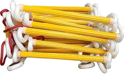 FITS MOST WINDOWS: This emergency rope ladder is a necessity for any home, building or commercial establishment to create route to survival in case of fires. Thanks to the heavy-duty carabines and 32 ft length, it can be used on window frames of all sizes making it perfect for apartments, suburban homes, hotels and more.